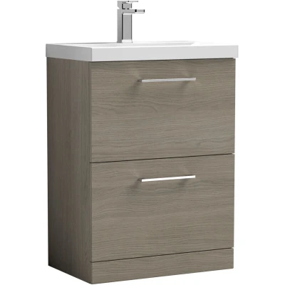 Balterley Level Modern Bathroom Floor Standing 2 Drawer Vanity & Mid Edge Ceramic Basin, Solace Oak, 600mm