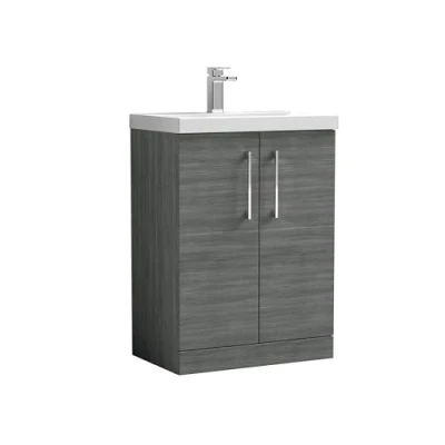 Balterley Level Modern Bathroom Floor Standing 2 Soft Close Door & Mid Edge Vanity Unit Basin, Anthracite, 600mm