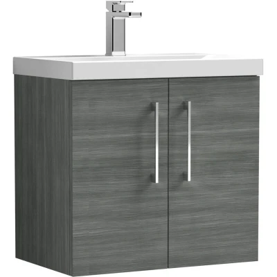 Balterley Level Modern Bathroom Wall Hung 2 Soft Close Door & Mid Edge Vanity Unit Basin, Anthracite, 600mm