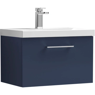 Balterley Wall Hung 1 Soft Close Drawer & Bathroom Vanity Unit Basin, Midnight Blue, 600mm Upgrade your bathroom with the Balterley 600mm Wall Hung 1-Drawer Vanity in Midnight Blue. Its space-saving wall-hung design makes cleaning effortless while creating the impression of a larger, open bathroom. This Midnight Blue wall-hung vanity features a smooth soft-close drawer, providing organised storage for toiletries while keeping your surfaces tidy and clutter-free. Complete with a durable thin-edge vitreous china basin, it combines practical functionality with a stylish modern design for UK bathrooms. Product Highlights: Midnight Blue Finish: Elegant Midnight Blue transforms your bathroom, adding a luxurious, contemporary feel that complements any modern décor with timeless style. Wall-Hung Space-Saving Design: Wall-mounted vanity frees floor space, making your bathroom feel larger and brighter while allowing easier cleaning and maintenance. Soft-Close Drawer: Single soft-close drawer