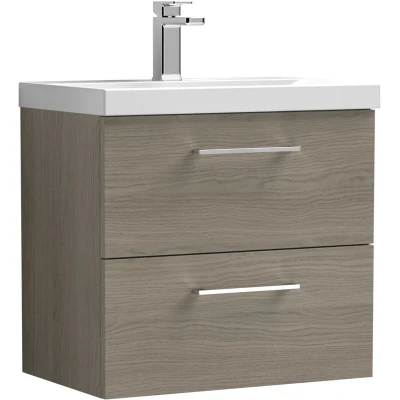 Balterley Level Wall Hung 2 Soft Close Drawer & Thin Edge Bathroom Vanity Unit Basin, Solace Oak, 600mm