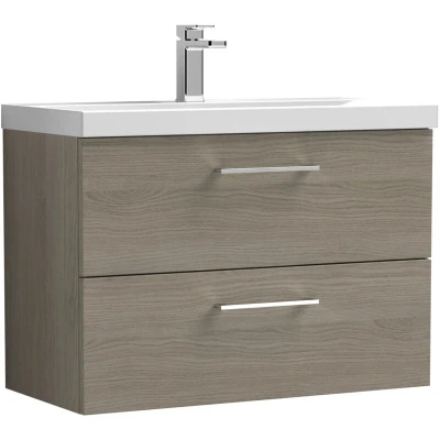 Balterley Level Wall Hung 2 Soft Close Drawer & Thin Edge Bathroom Vanity Unit Basin, Solace Oak, 800mm
