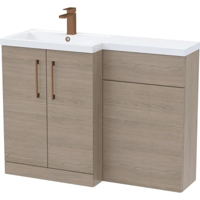 Balterley Mid Oak Bathroom Vanity Unit with Basin & WC, Brushed Bronze Handles, Left Hand, 1100mm x 390mm