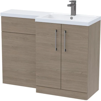 Balterley Mid Oak Bathroom Vanity Unit with Basin & WC, Brushed Pewter Handles, Right Hand, 1100mm x 390mm Perfect for cloakrooms, ensuites, and smaller bathrooms, this floor-standing combination unit offers ample storage for all your essentials. With a matching WC unit and vanity basin unit complete with basin and worktop, it brings a modern, elegant look to any space. It’s also available in both left-hand and right-hand options to suit your bathroom layout perfectly. Transform your bathroom into a stylish, organised, and calming space with this beautifully coordinated vanity basin and WC combination unit. Designed to bring both elegance and everyday practicality into your home, it creates a seamless, clutter-free environment that enhances the way you use your bathroom. Product Highlights: Space Saving: Perfect for cloakrooms, ensuites, and smaller bathrooms, this unit provides practical storage without compromising on style. Mid Oak: A warm mid oak surface paired with a white