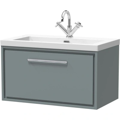 Balterley Modern Bathroom 1 Soft-Close Drawer Wall Hung Vanity Unit Fireclay Basin, Coastal Grey, 800mm Upgrade your bathroom with the Balterley 800mm Coastal Grey Wall Hung Vanity, designed to maximise storage in a compact, stylish footprint. Its soft-close drawer and durable fireclay basin provide everyday practicality with a clean, modern look. The Balterley 800mm Coastal Grey vanity combines a space-saving wall-hung design with easy-clean surfaces and practical drawer storage for an organised, modern bathroom. Its robust fireclay basin and solid construction offer lasting performance and style. Product Highlights: Stylish Coastal Grey: A calm, versatile shade that complements any bathroom style, with a smooth, easy-to-clean finish. Space-Saving Wall-Hung: Frees floor space for an open, airy feel and easy cleaning underneath, keeping your bathroom tidy with minimal effort. Soft-Close Drawer: Single smooth, quiet drawer provides ample storage for toiletries and essentials, keeping