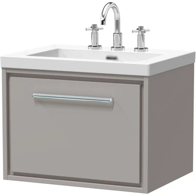 Balterley Modern Bathroom 1 Soft Close Drawer Wall Hung Vanity Unit Fireclay Basin, Pebble Grey, 600mm