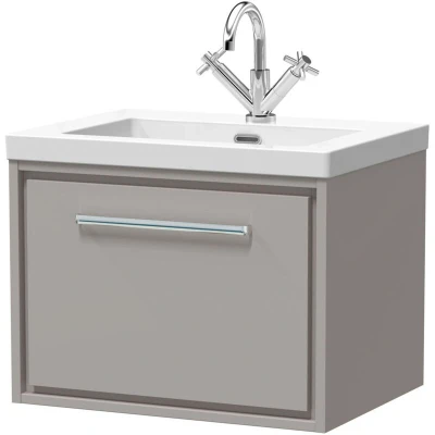 Balterley Modern Bathroom 1 Soft Close Drawer Wall Hung Vanity Unit Fireclay Basin, Pebble Grey, 600mm