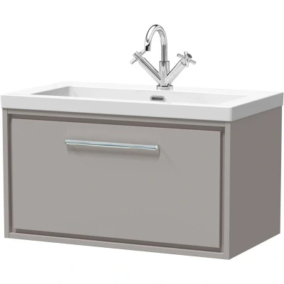 Balterley Modern Bathroom 1 Soft Close Drawer Wall Hung Vanity Unit Fireclay Basin, Pebble Grey, 800mm
