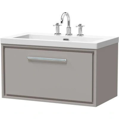 Balterley Modern Bathroom 1 Soft Close Drawer Wall Hung Vanity Unit with Fireclay Basin, Pebble Grey, 800mm