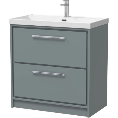Balterley Modern Bathroom 2 Soft Close Drawer Floor Standing Vanity Unit & Rectangular Basin, Coastal Grey, 800mm