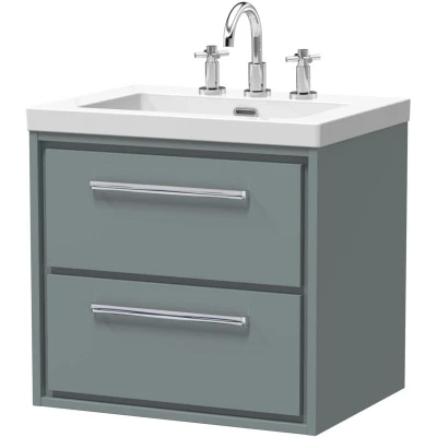 Balterley Modern Bathroom 2 Soft Close Drawer Wall Hung Vanity Unit Fireclay Basin, Coastal Grey, 600mm Upgrade your bathroom with this Coastal Grey wall-hung vanity featuring two soft-close drawers and a durable fireclay basin. Its sleek design and space-saving style make it perfect for modern bathrooms. This wall-hung vanity maximises floor space and makes cleaning effortless with smooth, easy-to-maintain surfaces. Its robust basin and double drawers provide practical storage with a stylish, contemporary finish. Product Highlights: Colour Coastal Grey: Finished in soothing Coastal Grey, this wall-hung vanity brings a stylish and modern touch to your bathroom while resisting moisture and maintaining a clean, fresh look. Space-Saving Wall Hung Design: Frees up floor space for a lighter, more open feel and makes cleaning underneath quick and easy, ideal for compact or smaller bathroom layouts. Two Soft-Close Drawers: Features two soft-close drawers to store toiletries neatly, reducing