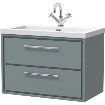 Balterley Modern Bathroom 2 Soft-Close Drawer Wall Hung Vanity Unit Fireclay Basin, Coastal Grey, 800mm Upgrade your bathroom with the Balterley 800mm Coastal Grey Wall Hung 2-Drawer Vanity, designed to combine practical storage with a sleek, modern finish. The soft-close drawers and durable fireclay basin make it stylish, functional, and easy to maintain. The Balterley 800mm Coastal Grey wall hung vanity features dual soft-close drawers and a fireclay basin for a practical, space-saving solution. Its contemporary finish adds a sophisticated touch while keeping your bathroom organised and simple to clean. Product Highlights: Stylish Coastal Grey: Neutral shade adds a calm, modern touch, complements any décor, and features a smooth, easy-to-clean surface. Space-Saving Wall-Hung: Frees floor space for an open, airy feel and effortless cleaning underneath, keeping your bathroom tidy and easy to maintain. Dual Soft-Close Drawers: Two spacious drawers close quietly, keeping toiletries