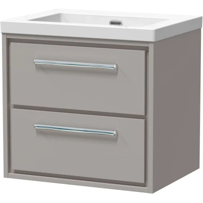 Balterley Modern Bathroom 2 Soft Close Drawer Wall Hung Vanity Unit Fireclay Basin, Pebble Grey, 600mm