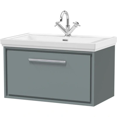 Balterley Modern Bathroom Wall Hung Single Drawer Vanity Unit with Fireclay Basin, Coastal Grey, 800mm