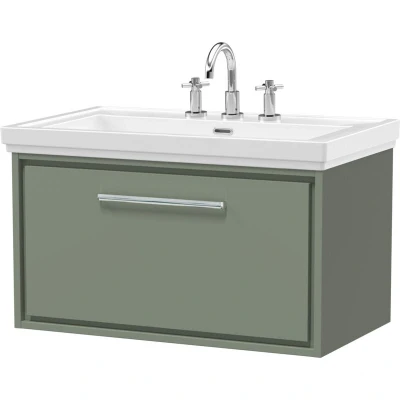 Balterley Modern Bathroom Wall Hung Single Drawer Vanity Unit with Fireclay Basin, Fern Green, 800mm