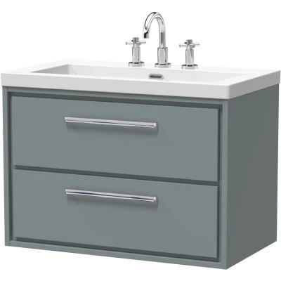 Balterley Modern Wall Hung 2 Drawer Bathroom Vanity with Fireclay Basin, Coastal Grey, 800mm