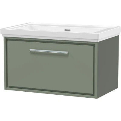 Balterley Modern Wall Hung Single Drawer Bathroom Vanity with Fireclay Basin, Fern Green, 800mm