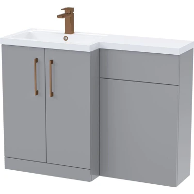 Balterley Satin Grey Bathroom Vanity Unit with Basin & WC, Brushed Bronze Handles, Left Hand, 1100mm x 390mm