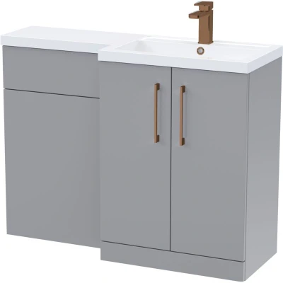 Balterley Satin Grey Bathroom Vanity Unit with Basin & WC, Brushed Bronze Handles, Right Hand, 1100mm x 390mm