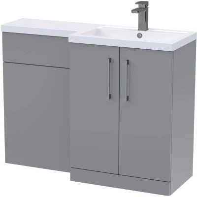 Balterley Grey Bathroom Vanity Unit with Basin & WC, Brushed Pewter Handles, Right Hand, 1100mm x 390mm Perfect for cloakrooms, ensuites, and smaller bathrooms, this floor-standing combination unit offers ample storage for all your essentials. With a matching WC unit and vanity basin unit complete with basin and worktop, it brings a modern, elegant look to any space. It’s also available in both left-hand and right-hand options to suit your bathroom layout perfectly. Transform your bathroom into a stylish, organised, and calming space with this beautifully coordinated vanity basin and WC combination unit. Designed to bring both elegance and everyday practicality into your home, it creates a seamless, clutter-free environment that enhances the way you use your bathroom. Product Highlights: Space Saving: Perfect for cloakrooms, ensuites, and smaller bathrooms, this unit provides practical storage without compromising on style. Satin Grey: A sleek satin grey surface paired with a white