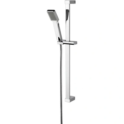 Square Slide Rail Shower Kit with Single Function Head - Chrome - Balterley Pair with matching brassware for a consistent bathroom design, or with a different finish for an eye-catching focal point. Manufactured from high quality materials in a classic chrome finish. Adjustable height and contemporary square design makes this slide rail kit a great addition to your bathroom. The detachable single function handset helps make washing easier, without compromising on style. Product Highlights Contemporary square design Adjustable height with slide rail Single function handset Classic Chrome finish Manufactured from brass and ABS Dimensions (mm): W 660 x H 660 x D 70 Product Weight (KG): 0.9 Manufacturer's guarantee: 5 Year