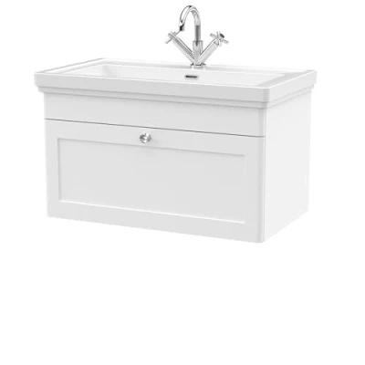 Balterley Traditional Wall Hung 1 Drawer Vanity Unit with Tap Hole Fireclay Basin, 800mm Satin White
