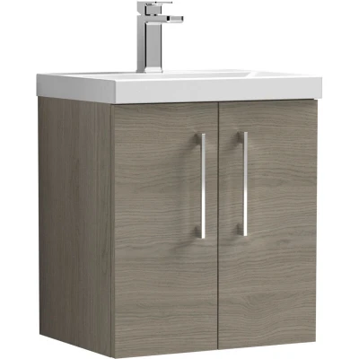Balterley Wall Hung 2 Soft Close Door & Thin Edge Bathroom Vanity Unit Basin, Solace Oak, 500 mm