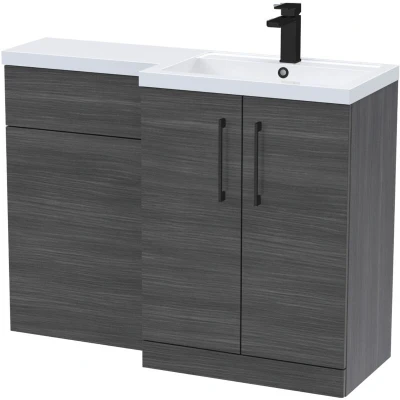 Balterley Woodgrain Anthracite Bathroom Vanity Unit with Basin & WC, Black Handles, Right Hand, 1100mm x 390mm