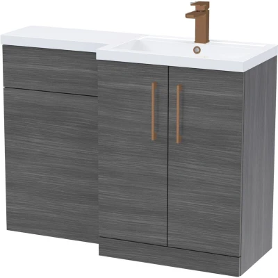 Balterley Woodgrain Anthracite Bathroom Vanity Unit with Basin & WC, Brushed Bronze Handles, Right Hand, 1100mm x 390mm