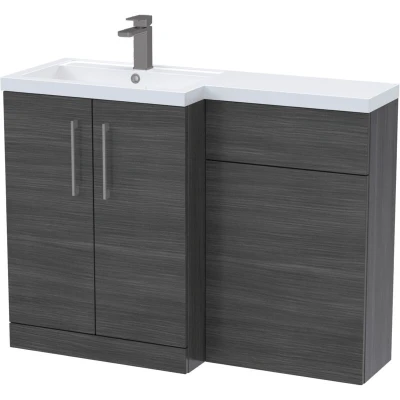 Balterley Woodgrain Anthracite Bathroom Vanity Unit with Basin & WC, Brushed Pewter Handles, Left Hand, 1100mm x 390mm