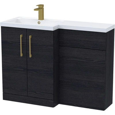 Balterley Woodgrain Black Bathroom Vanity Unit with Basin & WC, Brushed Brass Handles, Left Hand, 1100mm x 390mm