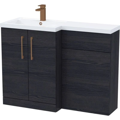 Balterley Woodgrain Black Bathroom Vanity Unit with Basin & WC, Brushed Bronze Handles, Left Hand, 1100mm x 390mm