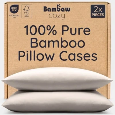 Premium Bamboo Quality: These bamboo pillowcases are made from 100% Tanboocel bamboo fibres, no blends or synthetics, to preserve all of bamboo’s natural benefits. Our bamboo bedding is FSC and OEKO-TEX Standard 100 certified for guaranteed quality. Good for Skin & Hair: Wake up looking and feeling your best. The silky-smooth texture of this bamboo pillowcase reduces friction and helps prevent wrinkles, acne, frizz and split ends. Lab-tested hypoallergenic and breathable, these bamboo pillowcases are gentle on sensitive skin and absorb excess moisture without drying out skin or hair. Naturally Cooling: Naturally 2,7 times cooler than cotton, our cooling pillow cases keep you dry and fresh all night. Perfect for hot sleepers, this cooling pillow case helps prevent overheating and night sweats for uninterrupted sleep. Create Your Ideal Bedding: This listing includes a bamboo pillow cases pack of 2 (pillows not included). Pair it with other Bambaw Cozy bedding items sold separately and wrap yourself in comfort pure. Easy Care: Machine wash at 30°C and tumble dry on low. Bamboo fabric becomes softer with each wash and maintains its beauty over time. Avoid bleach and fabric softeners to preserve its natural qualities.