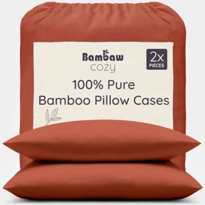 Bambaw Bamboo Pillowcase 50x75 cm, 2 Pack, Temperature Balancing Pillowcases, Hypoallergenic Pillowcases with Envelope Closure, Breathable & Cooling Pillow Cases Pack cm (Terracotta)