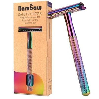 Bambaw Double Edge Safety Razor, Zero Waste Razors for Men and Women, Classic Metal Eco Friendly & Reusable, Rainbow, No Blade Included