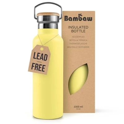 Eco & health conscious: Crafted from durable 18/8 stainless steel, our water bottle metal is BPA-free, rust-proof, and leak-proof. Say goodbye to plastic and enjoy safe hydration with these eco-friendly 1ltr water bottles. Double wall insulated: Stay hydrated in all circumstances! The 1000ml water bottles keep drinks hot for 12 hours and cold for 24. Perfect for all your daily adventures. Big opening: Large enough to hold ice cubes or a tea infuser, the Bambaw drink water bottle’s wide opening also makes it easy to enjoy a variety of delightful drinks. Easy to clean: With its spacious neck design, this hot drink flask offers simple maintenance. You can clearly see inside and reach every corner with a bottle brush. 100% Stainless Steel & Lead-Free: Full stainless steel interior with lead-free insulation—no plastic or harmful substances, unlike some other bottles. No more plastic taste: Be aware that water in metal flask might taste different than in plastic. Prepare your palate for this healthier change., Weight: 1.21033781838 Pounds, Manufacturer: Bambaw