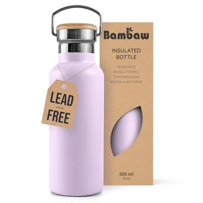 Eco & health conscious: Crafted from durable 18/8 stainless steel, our metal water bottle is BPA-free, rust-proof, and leak-proof. Say goodbye to plastic and enjoy safe hydration with this eco-friendly water bottle metal. Double wall insulated: Stay hydrated in all circumstances! The insulated stainless steel water bottle keeps drinks hot for 12 hours and cold for 24. Perfect for all your daily adventures. Big opening: Large enough to hold ice cubes or a tea infuser, the Bambaw metal flask’s wide opening also makes it easy to enjoy a variety of delightful drinks. Easy to clean: With their spacious neck design, these water bottles 500ml offers simple maintenance. You can clearly see inside and reach every corner with a bottle brush. 100% Stainless Steel & Lead-Free: Full stainless steel interior with lead-free insulation—no plastic or harmful substances, unlike some other bottles. No more plastic taste: Be aware that water in metal flask might taste different than in plastic. Prepare your palate for this healthier change., Weight: 0.7495716908 pounds, Manufacturer: Bambaw