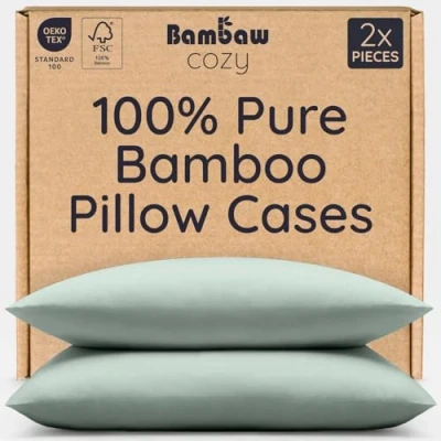 Premium Bamboo Quality: These bamboo pillowcases are made from 100% Tanboocel bamboo fibres, no blends or synthetics, to preserve all of bamboo’s natural benefits. Our bamboo bedding is FSC and OEKO-TEX Standard 100 certified for guaranteed quality. Good for Skin & Hair: Wake up looking and feeling your best. The silky-smooth texture of this bamboo pillowcase reduces friction and helps prevent wrinkles, acne, frizz and split ends. Lab-tested hypoallergenic and breathable, these bamboo pillowcases are gentle on sensitive skin and absorb excess moisture without drying out skin or hair. Naturally Cooling: Naturally 2,7 times cooler than cotton, our cooling pillow cases keep you dry and fresh all night. Perfect for hot sleepers, this cooling pillow case helps prevent overheating and night sweats for uninterrupted sleep. Create Your Ideal Bedding: This listing includes a bamboo pillow cases pack of 2 (pillows not included). Pair it with other Bambaw Cozy bedding items sold separately and wrap yourself in comfort pure. Easy Care: Machine wash at 30°C and tumble dry on low. Bamboo fabric becomes softer with each wash and maintains its beauty over time. Avoid bleach and fabric softeners to preserve its natural qualities.