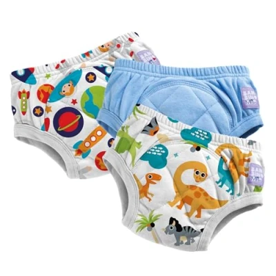 Bambino Mio (3 Pack) Training Pants for Toddlers Reusable Cloth Potty Underwear, 3 4 Years, Blue Astronauts & Dinosaurs, Baby and Toddler, Boys Girls with Cross Stitch