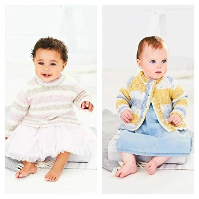 Stylecraft Bambino Prints Knitting Pattern Jumper & Cardigan 16 24ins