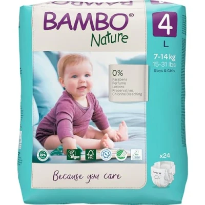 SUPER ABSORBENT: Size 4 Nappies that won’t let you down; Our intelligent channel system absorbs moisture to ensure a dry surface against your baby’s skin; Added leakage protection & wetness indicator SECURE & COMFORTABLE: Using flexible material; we designed these Premium Nappies with your child’s comfort in mind; Super-soft & fully breathable so your baby can stay active & sleep comfortably ECO-LABELLED : Because you care about the environment we make our baby Nappies from responsibly sourced raw materials to limit the impact on the environment - FSC & Nordic Swan Ecolabel certified SKIN FRIENDLY: These hypoallergenic Bambo Nature Premium Eco Nappies have been Asthma Allergy approved to keep your child safe; Free of parabens; perfume & preservatives; containing no known allergens CHEMICAL FREE: Extra-soft Bambo Baby Nappies free from chlorine; Phthalates; optical brighteners; PVC; heavy metals & organotins; No harmful chemicals have been used to make your child’s nappies