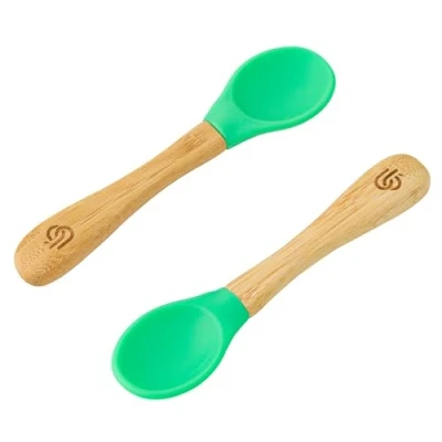 Bamboo ® Baby Weaning Spoons Set of 2 with Soft Silicone Tips Ergonomic Easy Grip Handles BPA Free (Set 2, Green)