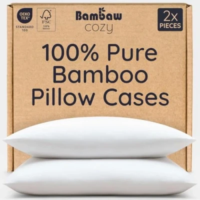 Premium Bamboo Quality: These bamboo pillowcases are made from 100% Tanboocel bamboo fibres, no blends or synthetics, to preserve all of bamboo’s natural benefits. Our bamboo bedding is FSC and OEKO-TEX Standard 100 certified for guaranteed quality. Good for Skin & Hair: Wake up looking and feeling your best. The silky-smooth texture of this bamboo pillowcase reduces friction and helps prevent wrinkles, acne, frizz and split ends. Lab-tested hypoallergenic and breathable, these bamboo pillowcases are gentle on sensitive skin and absorb excess moisture without drying out skin or hair. Naturally Cooling: Naturally 2,7 times cooler than cotton, our cooling pillow cases keep you dry and fresh all night. Perfect for hot sleepers, this cooling pillow case helps prevent overheating and night sweats for uninterrupted sleep. Create Your Ideal Bedding: This listing includes a bamboo pillow cases pack of 2 (pillows not included). Pair it with other Bambaw Cozy bedding items sold separately and wrap yourself in comfort pure. Easy Care: Machine wash at 30°C and tumble dry on low. Bamboo fabric becomes softer with each wash and maintains its beauty over time. Avoid bleach and fabric softeners to preserve its natural qualities.