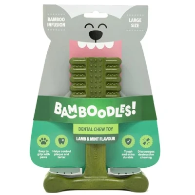Bamboodles T Bone Dog Chew Toy Large Mint & Lamb Flavour Long Lasting Natural for Small Dogs and Puppies Durable, Safe Satisfying Stick