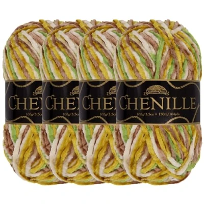BambooMN JubileeYarn Chenille Yarn Worsted Polyester 100g/Skein Summerland 4 Skeins