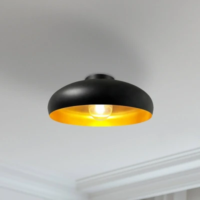 ⭐ Material: The Industrial ceiling lamp is made of metal and durable. The diameter is 40 cm and the height of the kitchen lamp is 20 cm. Color of the dining table ceiling light is black. The inside of the lampshade is gold. ⭐ Technical info: The lamps are used E27 bulbs with a maximum of 60 watts (Not included); Compatible with LED, halogen, rustic bulb; It is also ceiling light can be used with dimmer. ⭐ Appearance: Ceiling Lamp Fitting with elegant and industrial vintage design to create a pleasant atmosphere for your room. Our ceiling light is designed with retro style industrial shade, the hanging lampshade not only can well protect your bulb from impact but also increase the fashionable charm, which perfectly merges with modern decorating style and antique feeling for you. ⭐Usage Areas: The industrial ceiling lighting is Perfect blend of modern and industrial design, harmonious in every style decor.The design of shade and the black is eternal classics which will never out of time. The decorative and functional lighting is ideal for use in hotels, cafés, restaurants, children's rooms, living rooms, bedrooms, kitchens and offices. This chandeliers ceiling light is an ideal light fixture to add warmth and creativity to your kitchen or living room; Comes with full accessories, easy to assemble and install; Perfect for the bar, loft, dining room, hallway, bedroom, etc. ⭐ Easy Installation & Quick Customer Service: The kitchen light comes with all the installation equipments and the installation of the industrial lamp is very easy. If you have any problems or questions about the industrial ceiling lamp you can contact our customer service and get an answer immediately!