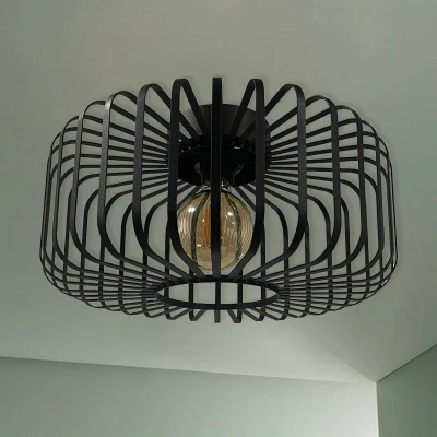 bamyum Cage Black Metal Lamp 40 cm, Vintage Vertigo Pendant Light, Indoor Hanging Lights, Living Room, Bedroom, Restaurant, Modern Lamp, Ceiling Light