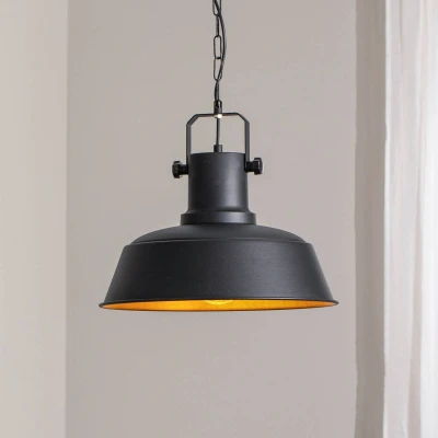 MATERIAL & COLOR: The material of the black hanging lamp is metal. Diameter is 40 cm and height of the hanging lamp dining table is 35 cm. The inside of the lampshade is gold color TECHNICAL INFO: Living room lamp socket is E27, maximum 60 watts, including bulb: no. LED, halogen and rustic lights are used in this hanging kitchen lamp. The cable of the industrial lamp living room has a length of 120 cm and can be shortened as desired. Voltage: 120-240V. This black hanging lamp can be used with a dimmer INDUSTRIAL-VINTAGE : Add a shiny vintage style E27 bulb for a warm and inviting glow. Create a romantic atmosphere and bring a warm vintage look & feel OTHER USES: The vintage pendant light black is very suitable for kitchen, living room, dining room, bedroom, dining room, hallway, cafe, restaurant, hotel, bar, study, club, storage room, etc EASY TO INSTALL & CUSTOMER SERVICE: The industrial pendant light is sent with all installation equipments and the installation of the lamp is very easy. If you have any problems or questions about the vintage pendant lamp, you can contact our customer service and get an answer immediately