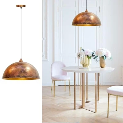 ⭐ Material: The vintage ceiling light is made of metal and durable. The diameter is 50 cm and the height of the kitchen lamp is 30 cm. Color of the dining table pendant light is copper. The inside of the lampshade is gold color. ⭐ Technical info: The pendants are used E27 bulbs with a maximum of 60 watts (Not included); Compatible with LED, halogen, rustic bulb; It is also pendant light can be used with dimmer. ⭐ Appearance: Retro Pendant Light Fitting with elegant and industrial vintage design to create a pleasant atmosphere for your room. Our ceiling light is designed with retro style industrial shade, the hanging lampshade not only can well protect your bulb from impact but also increase the fashionable charm, which perfectly merges with modern decorating style and antique feeling for you. ⭐ Adjustable Length: The hanging cord is adjustable up to 120 cm, you can adjust the pendant light length to your needs; It can be used as a pendant light or a ceiling light. ⭐Usage Areas: The industrial pendant lighting is Perfect blend of modern and industrial design, harmonious in every style decor.The design of shade and the black is eternal classics which will never out of time. The decorative and functional lighting is ideal for use in hotels, cafés, restaurants, children's rooms, living rooms, bedrooms, kitchens and offices. This chandeliers ceiling light is an ideal light fixture to add warmth and creativity to your kitchen or living room; Comes with full accessories, easy to assemble and install; Perfect for the bar, loft, dining room, hallway, bedroom, etc. ⭐ Easy Installation & Quick Customer Service: The kitchen light comes with all the installation equipments and the installation of the industrial lamp is very easy. If you have any problems or questions about the industrial pendant lighting you can contact our customer service and get an answer immediately!