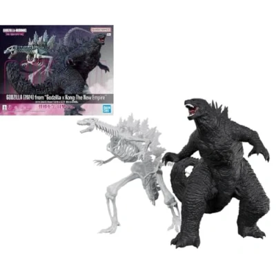 OFFICIAL BANDAI MODEL KIT | Featuring Godzilla’s 2024 design from Godzilla x Kong: The New Empire, perfect for fans and collectors. AUTHENTIC GODZILLA MODEL KIT | Recreates the fearsome Godzilla from Godzilla and Kong - The New Empire (2024). The characteristic skeletal parts are three-dimensional produced by Shinji Nishikawa, who has participated in almost all Godzilla movies by providing monster and mecha designs, as well as setting and production plans. Expresses a dynamic bone swell that matches the pose. Attention is paid to the detailed structure, and the realistic bone form is three-dimensional. NO GLUE OR PAINT REQUIRED | Snap-fit parts make assembly easy and clean, ideal for beginners and hobbyists. All of the parts can be easily put together without any glue. EASY COLOR RECREATION| The one and only technology that enables four colours to be available in one set of parts, which we call "runner". Recreates Godzilla's look straight out of the box with no extra tools. DUAL DISPLAY OPTIONS | Showcase Godzilla with the skeleton embedded inside the body or displayed separately alongside it. Two types of support parts are included to support the large body., Manufacturer: BANDAI